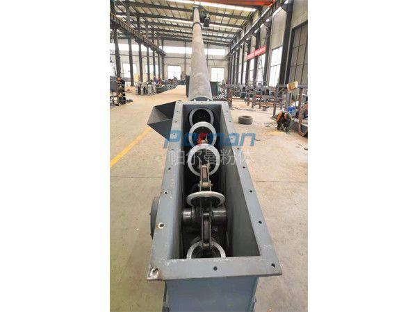 管鏈輸送機在輸送物料過程中,具有埋刮板輸送機輸送能力大,使用壽命長、維修費用低,密封性好,安全,耗能低的特點,也具備斗式提升機的垂直輸送的能力,同時布置更為靈活(水平-垂直/傾斜-水平),密封性能更高。物料垂直輸送中無回料,不破壞物料,不揚塵的特點。在輸送含水物料、易吸附物料、比重很輕的物料時,在機箱內(nèi)可安裝電動清掃器。