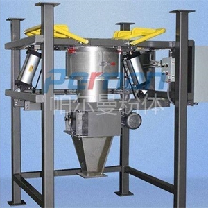 噸袋拆包機(jī)其原理是通過叉車或電動(dòng)葫蘆提升料袋至進(jìn)料口,進(jìn)行壓袋。人工將包裝袋下料口拆開或者自動(dòng)破帶后,打開流量控制閥和附帶的滾動(dòng)或拍打裝置,促使包裝袋內(nèi)的物料通過自重落到下方料斗中。