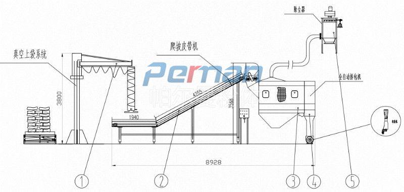 設備主要部件:1.上料裝置2.破袋裝置 3.分離裝置 4.除塵裝置 5.輸送裝置6.自動控制