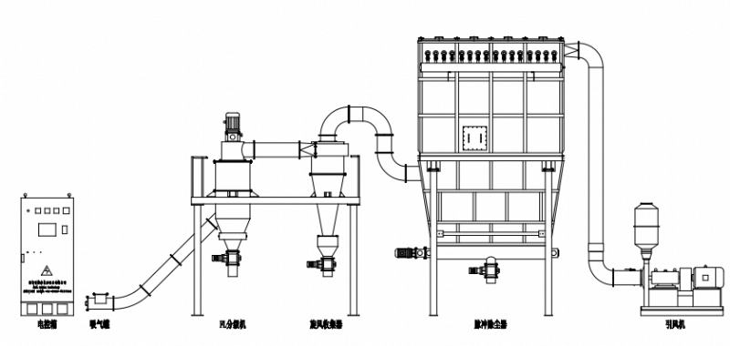 ● 可與球磨機、振動磨、雷蒙磨等粉磨設(shè)備串聯(lián)使用,組成閉路循環(huán)。